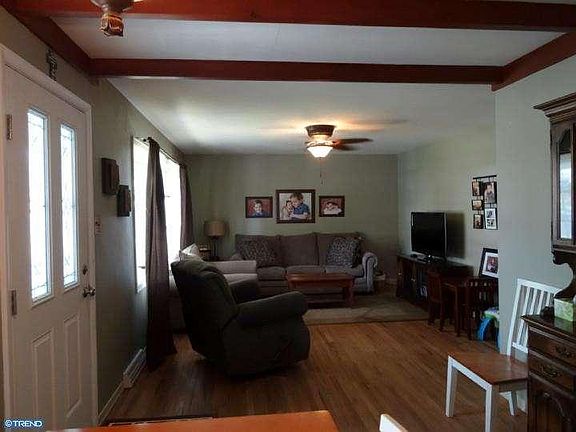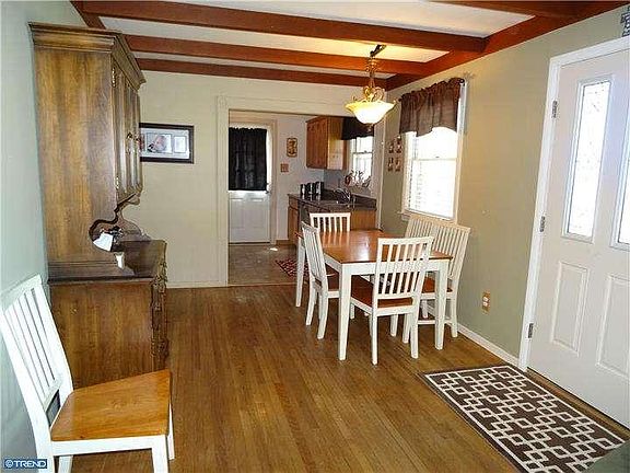 All ready for you with a newer kitchen and bathroom, plus central air. Welcome! This home is well maintained and located on a one way street with large shade trees, and a level back yard with a drive to access the garage and provide off street parking. The current owners have remodeled the kitchen and the hall bath, added central air (gas heat an added bonus), finished the daylight walk out basement, upgraded the electric panel, plus added new exterior doors, ceiling fans and a front porch. There are hardwood floors throughout the first floor with new tile in the bathroom and vinyl in the kitchen while wall to wall carpet finishes the family room, one bedroom has carpet over the hardwood. A large bay window brightens the living room. The room flows into the dining room then the kitchen for an open floor plan. Ceiling beams and a chandelier accent the dining room. Oak cabinets and corian counters, along with a microwave, dishwasher, self cleaning range/oven, stainless sink will make kitchen time a breeze. The hall bath is ceramic tile, featuring a vanity, medicine chest, and shower/tub combination, and served by a hall linen closet. Three bedrooms line the rear of the home, all with closets. The family room is in the lower level with access to the back yard. New windows, recessed lights, carpeting make this a perfect gathering spot. The laundry hook ups and tubs, large storage area, the start of a powder room (toilet only) wrap up the remainder of the lower level. The garage has an automatic door opener, and keyless entry. Additional storage through attic access in guest closet. Square footage includes family room. 01/22/15