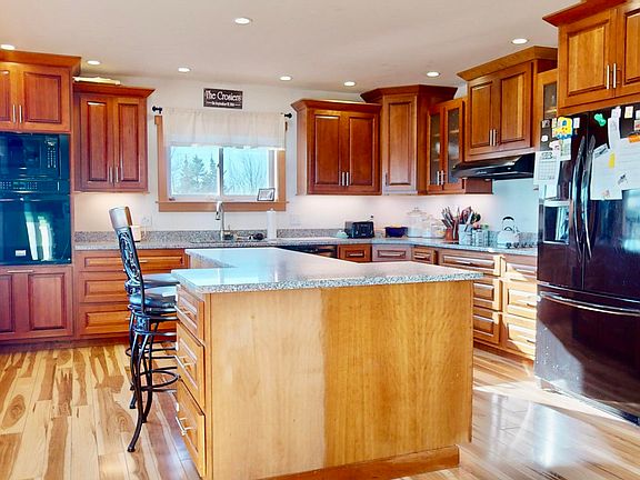 Spacious family home on over 6 acres of land! This three-bedroom, two-bathroom home is perched above a large workshop area and has distant scenic views. The main living areas are on the 2nd and 3rd stories and feature an open kitchen with a center island, granite countertops, and wood cabinetry, a spacious living room/dining room, a bathroom with laundry, and a walk-out deck running the length of the second story—perfect for entertaining or outdoor dining.