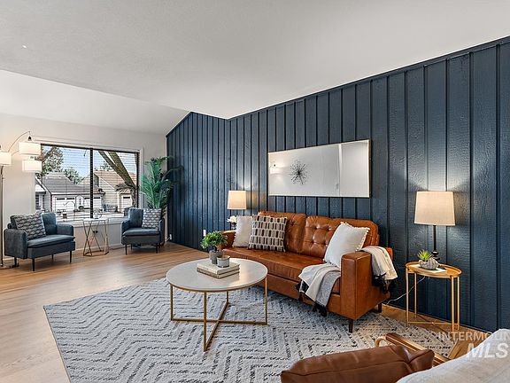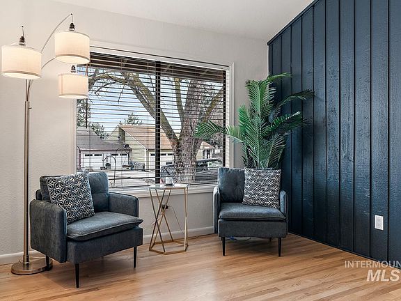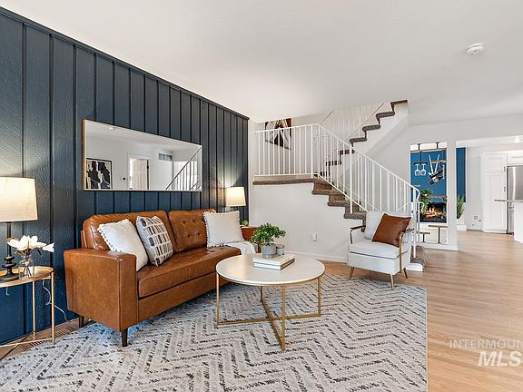 Welcome to this captivating home in Foothills East offering 2784 sq feet of multi-use living spaces. The updated white kitchen with butcher block counters, open shelving, and stainless appliances, dining area and fireplace invites your culinary adventures. Featuring beautiful brand new hardwood floors throughout the first-floor and an office/bedroom and full bath. Upstairs three bedrooms including master suite with accent wall and updated ensuite bath. Lower level has 2 guest rooms/home office spaces and recreation room and full bath. Bike to the Greenbelt, Roosevelt Market, and the Botanical Gardens for endless exploration. Outdoor enthusiasts will love being near Foothills East Park, Table Rock, & Eagle Eye Reserve. The large fenced backyard with expansive deck perfect for bbqs, raised garden beds, and shed is ideal for outdoor entertaining and endless hobbies. The cul-de-sac location and fruit trees with edible landscaping make this home a true haven. Don't miss the chance to call this gem yours in Boise!