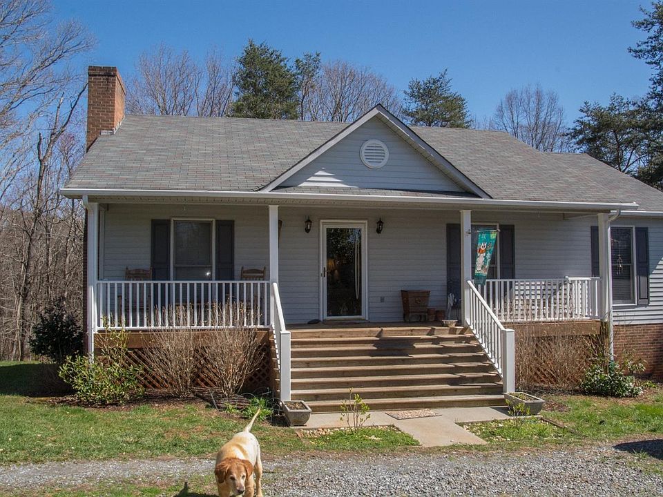Main level living with open concept on 5.6 acres of land just outside Altavista. Great room with vaulted ceiling and fireplace with gas logs, kitchen with custom oak cabinet and hard wood floors. 3 bedrooms on main floor Laundry closet and pantry on main floor. Basement with Prego flooring and wood stove that has passed safety inspection and double garage. Deck off kitchen with new hand railings and new shutters on house. This one won't last long.