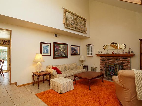 Great opportunity on this 4 bedroom, 2 bathroom home featuring a main bedroom retreat, balcony deck, first floor bedroom, pool & spa, clubhouse, RV/boat parking and beautiful mountain views. The front entry opens in to the living room with vaulted ceiling, fireplace with brick surround and tile flooring. The kitchen includes tile counters and backsplash, center island with bar overhang and built-in desk area. The adjacent dining room looks out to the spacious backyard featuring a large pool, spa, wide covered patio, built-in BBQ area and side clubhouse. Around the corner is the guest bathroom and generous sized first floor bedroom also with backyard access. The second floor main bedroom features a walk-in closet, retreat, stairway access to the backyard and a balcony deck boasting gorgeous mountain views. The main bathroom includes a separate spa tub and shower. Down the hall are two secondary bedrooms with walk-in closets.