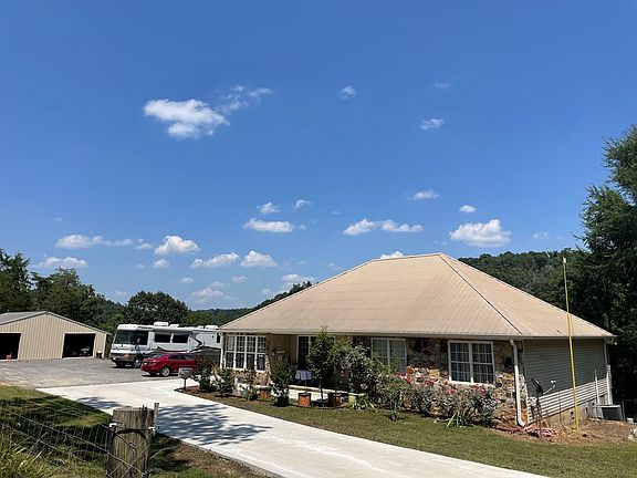 GREAT working FARM w/home, 35 Ac+/-, pond, creek front & 3/40x500 poultry houses!! Just appraised at $685K as-is!! This lovely home has PRIVACY sitting on the back side of property w/HUGE screened in patio on the bluff of SHORT CREEK - listening to yr round rushing water w/mountain feel &...6 seat HOT TUB! Renovated kit w/granite & quartz, gas stove & dshwr 2020, walk-in lndry, walk-in closet & garden tub in mstr ba, CH/A heat pump, gas lg FP, sunrm, den, mtl roof, stone & vnyl siding, 30x40 metal garage/shop w/10x8 doors, public water, paved drive, fenced pasture, woods and fishing pond. Poultry houses have 3-1000 gal gas tanks (owned) gas heaters, 30x40 drystack, solid sidewalls, 1000 lb incinerator, LB White brooders, 100KW generator 2002 diesel (home connected never to lose power), Rotem controllers/communicators, ChoreTime feeders, valve drkrs Min to LAKE GUNTERSVILLE STATE PARK!