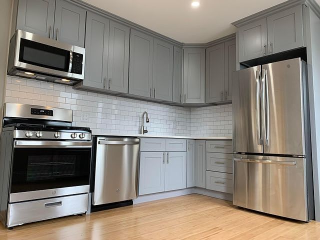 Great Morris Park location fully renovated apartment with all modern designs , exposed all brick walls , hardwood floors throughout , modern kitchen has quartz counter tops , stainless steel appliances, recessed lighting throughout, custom blinds, heat & hot water included , laundry & storage located in the basement , parking included, good credit, close to public transportation and retail stores. Garage parking $150.00 extra per month (Listing 6972339 Confirmed 12/6/2020)