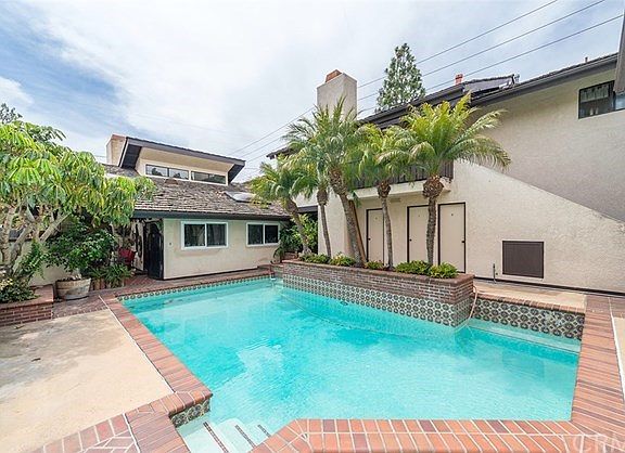 Light & Bright with patios and balconies. Gated courtyard entry with tons of privacy overlook sunny pool & Spa. 2 Car attached garage with direct access. Tile entry & first floor. Kitchen opens to dining area and has stainless appliances including gas range + oven, dishwasher and refrigerator/freezer. Trash compactor. Large Living room with high ceilings, fireplace and a 2nd dining area. Upstairs 3 large bedrooms with hardwood floors. Master suite has private bath. Hall bath has shower over tub. Casa blanca style fans. Master has a balcony. Close to Triangle Square, shopping and not far from beach communities of Newport & Huntington. No smokers. Submit on pets