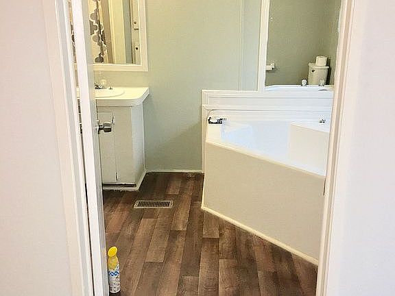 This property is available on a rent-to-own basis. This spacious three-bedroom/two-bathroom approximately 1,680 SqFt multi-section home features: Split Floor plan with the Master and en-suite bath on one side and 2 bedrooms with full bath on the other side. Master bath features dual sink vanity, separate shower and large soaking tub. Kitchen features plenty of cabinets and counter space with all appliances and large dining table with 6 chairs included. There's a living room at entry and a den/family room with deck access -Each with some furnishings included. Laundry room comes with washer and dryer less than 1 year old. Recently painted with newer carpet. New ceiling fans boxed, unopened ready for installation. New LED bulbs throughout the house and spare box included. New locks installed. Dedicated parking available for two cars. Contact us today to schedule viewing or apply! Property is on leased land which includes water, trash and sewer and the community has a pool and clubhouse at main entry. Everything currently in property to remain (Furniture, retouching paint, Cleaning supplies, etc) *Lot Lease to be transferred to new owner at time of completed RTO period. **Application, Background Checks and Payments done completely online. Applicant to pay fee for application and background check directly to service. Tenant responsible for Electric, Gas, Cable and Internet
