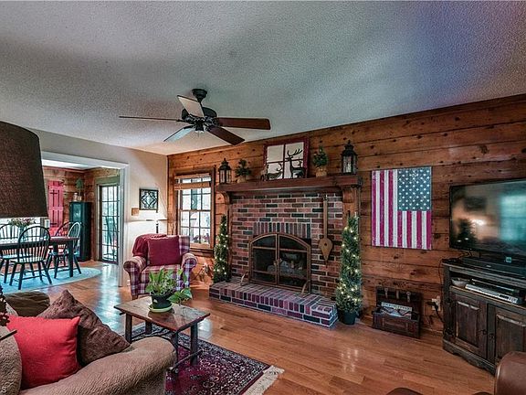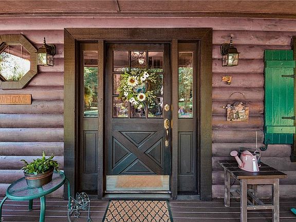 Gated entrance to log home in a park-like wooded setting on 1.5 acres w stamped walk to covered wrap porch. Freshly painted inside and out, new kitchen cabinets w pull outs, countertops, under counter and recessed lighting, stainless appliances, flooring. Living room has fireplace w gas logs. New hardwood floors and carpet . Tastefully updated baths. Major landscaping! Improvements addendum, deed, and disclosures in attachments. Very unique! Enchanting! You will love showing it.