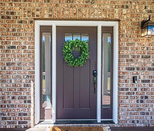 Welcome Home! One level living in Windsor Pointe with community lake access. This 3 bed 2 full bath home built in 2017 offers an open living area, split bedroom plan and beautiful hardwoods, rare find. Entering through the front door your formal dining room is located to the right featuring large windows for natural light. Spacious living room adjoins to the kitchen with breakfast bar, granite counter tops, and ample cabinet space. Off the kitchen awaits the oversized owners suite with access to the back patio. The en-suite features two walk in closets, jetted tub, separate shower and double vanity. Opposite side of the home features two additional bedrooms and hall bath. Attached two car garage. Fully fenced back yard with room for a pool and rocking chair front porch!