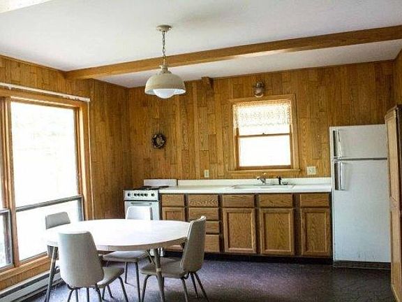BLUE LAKE CABIN W/DEEDED ACCESS - Wonder cabin with views of Blue Lake and deeded access! This great 2 bedroom cabin is the perfect getaway to curl up next to the wood burning fireplace on those cozy winter evenings or take a stroll down to the lake shore and take your boat our onto some of the clearest water in the Northwoods. Beautiful ash tongue and groove adorns the open kitchen and living rooms with its expansive windows overlooking the shore. Lower level can be finished off and has a partial bathroom started for you. Large lot with plenty of room to build a garage and then some. Great buy for a great price.