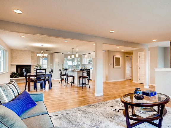 Arvada GEM. This tranquil, renovated Ranch is perfectly situated across from the beautiful Two Ponds Wildlife Refuge. The Sellers have seen deer and coyotes right outside their dining room window! This floorplan is so open and full of natural sunlight, perfect for entertaining and large families! Every room has been renovated; new kitchen cabinets with ample storage and pantry, stainless Steele appliances, beautiful granite and a large island. Right off the kitchen you have a stunning dining room with gas burning fireplace and accent stone wall, and an open connection to the large family room. The windows in this house beam with sunlight both upstairs and down! 4 bedrooms on the main level, including a wonderful primary bedroom + ensuite bath with duel sinks and a stand up shower. This home also features all new doors, well maintained hardwood floors, newer interior paint and newer windows throughout (including Egress in the basement)! Downstairs, you will find a private entry (perfect for an in-law suite or multi-generational living!), 2 spacious, light and bright bedrooms, a massive entertainment space with lots of room for media, playroom, game room or space for work/school from home, a full bathroom and laundry! Design this amazing space however you'd like! An optional "bonus room" with built-ins could make a great office or even a 7th bedroom! The space in this Arvada Ranch is absolutely breathtaking! The private yard features two patios + a large detached garage and RV parking pad! What more could you ask for? Please come take a look at this beauty! You will not be disappointed. Oh! And, BONUS - completely paid for Solar Panels!