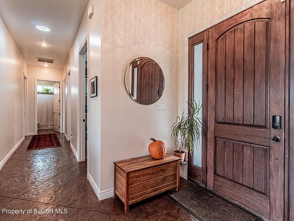Step into refined high desert living in this stunning 4 bedroom, 3 bath home, perfectly situated on 1.14 acres of beautifully landscaped grounds in Farmington, NM. Built in 2014, this spacious 2,656 sqft residence seamlessly combines modern comfort with Southwest charm.As you enter, you'll be greeted by a luxurious primary suite that offers a spa-like bathroom featuring a soaking tub, dual vanities, and two generous walk-in closets. The gourmet kitchen is a chef's delight, complete with granite countertops, double ovens, a large island, and a walk-in pantry. It flows effortlessly into the inviting family room, where you can cozy up by the charming fireplace. Step outside to your outdoor oasis, where a fully fenced yard awaits, adorned with mature landscaping and a full sprinkler system--ideal for entertaining and enjoying the beautiful surroundings. With a stylish tile roof and durable stucco exterior, this home not only exudes elegance but also offers room for future additions.Located in one of Farmington's most sought-after neighborhoods, this is your chance to embrace a lifestyle of comfort and beauty. Don't miss out on this incredible opportunity, schedule a tour today and make this dream home yours!