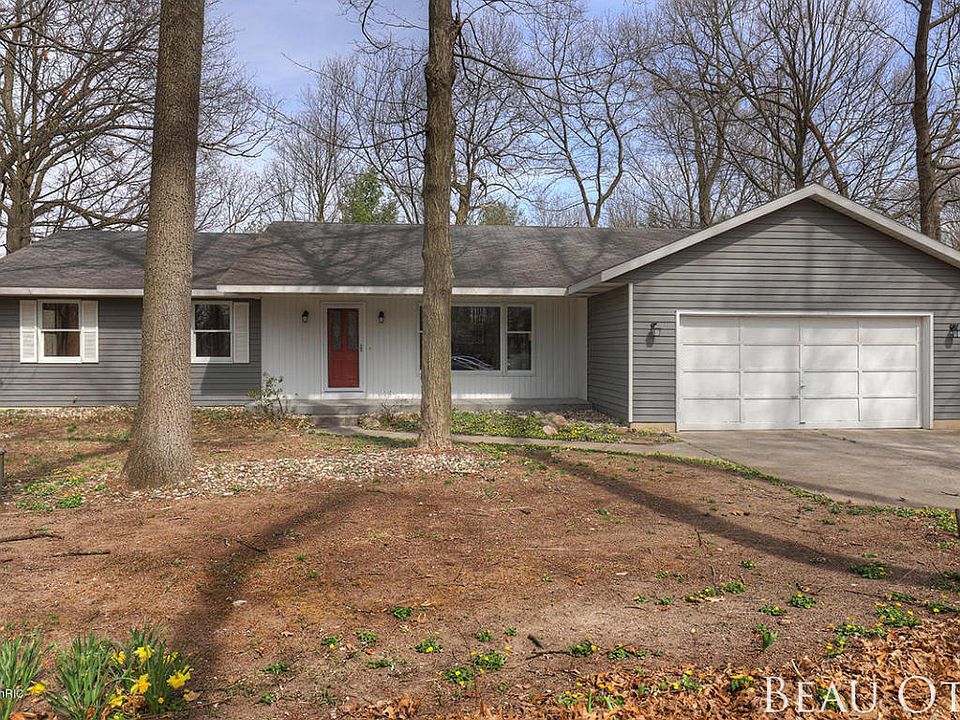 This 3-bedroom, 2 full bath walk-out ranch is situated on 1.27 wooded acres in award-winning Forest Hills Schools. It's just minutes from shops, schools, I-96, & all the amenities that Cascade Rd & 28th St have to offer. The home has been updated with new engineered wood flooring on most of the 1628 sq. ft main floor, new bathrooms vanities w/ granite counters, fresh paint throughout, updated lighting, electrical, hardware/fixtures, new stainless-steel appliances, granite counters in the kitchenand much more. The main floor has a spacious living room w/ large picture window, dining area w/ slider leading to the back deck, a great space for overlooking the woods & the wildlife that frequent the area, a cozy sitting area that opens up to the updated kitchen, master bedroom with en-suite bath, 2 additional bedrooms, a 2nd full bath & a laundry area. The walk-out lower level is a blank slate where you could easily add a large rec-room, additional bedrooms and another bathroom (plumbed).
