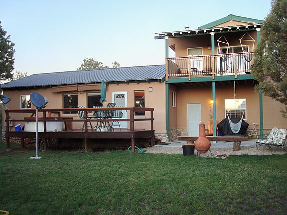 Stucco exterior with rustic wood accented interior. Double master floor plan. Ground level has kitchen, living, & dining open floor plan with 1 bedroom and full bath including steam shower/tub and stack washer/dryer. Front entry deck and large rear redwood deck with railing and 2 access areas to fenced back yard. Concrete pad for hot tub. Over garage guest suite with 1/2 kitchen (double sink/mini fridge/granite tile counter top). Full bath with closet and separate water heater. Sliding doors to east deck (view of La Plata Mountains). Sliding doors to west covered deck (view of Mesa Verde). Separate 2 room studio building. Separate garden shed building. Separate 20x25x13H equipment building. 3.07 acres. No HOA or subdivision.