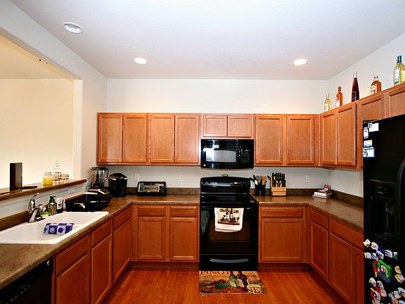 Charming 2 Bedroom+Loft end unit townhome with attached garage! Large formal living room and dining area perfect for entertaining! Beautiful kitchen with hardwood floors, maple cabinetery and sleek black appliances! 1/2 Bath on main level. Attached 2 car garage with this unit! Second story features a large loft area, perfect as an office space or family room! Both bedrooms include attached baths and walk in closets! Master suite with vaulted ceilings, ceiling fan and bath with dual vanity! Additional property amenities include central A/C, plenty of storage space and security system! Schedule a time to see this unit before it's gone!