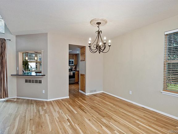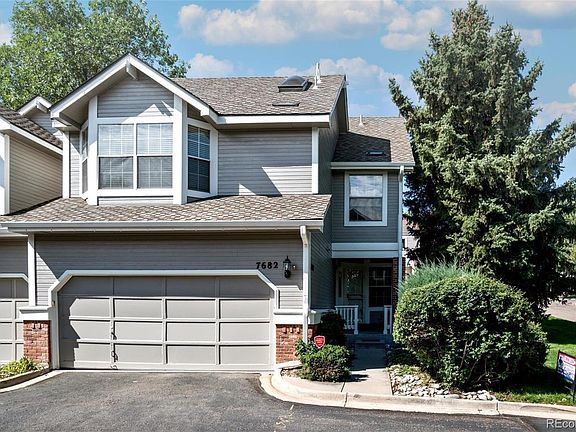 Awesome end unit in quiet location, just a few steps to walking, biking path and creek, hardwood floors in living and dinning rooms, hardwood in 2nd bedroom, third bedroom has wood laminate, newer carpet, dishwasher, stove and microwave, washer and dryer, BBQ, vaulted ceilings, skylight, 4 bed 3.5 baths, with 2 car attached garage, private fenced patio, built in cabinets and media center included, wine cellar. Stellar location with great access to I-25 and E-470