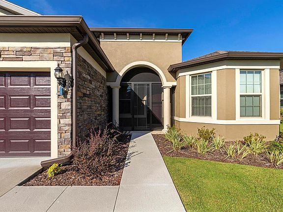 The moment you step into this spacious 3 bedroom, 3 bath with den, you will fall in love with the open floor plan. Only 1 year old, the home features a Chef's kitchen w/42'' Glacier Gray cabinets finished w/crown and pullouts, Stainless Steel built-in appliances, upgraded granite countertops thru out, custom backsplash, porcelain tile, 8' six panel doors, huge walk-in shower in master and guest suite and French Doors on the flex room. The step thru laundry offers ample cabinetry, counter space and connects to the extended garage w/screen, water softener, energy eff H/W heater and epoxy floor. With an elev 4 stacked stone exterior, screened entryway, screened lanai and a front view of the lake, this home has lots of curb appeal. Don't miss this great buy on the Pinnacle of your dreams!
