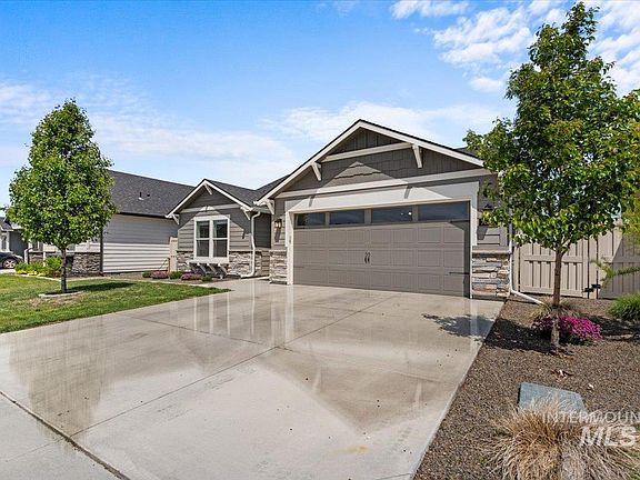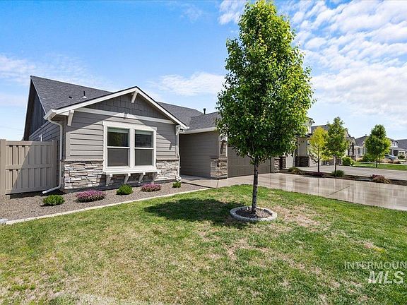 Welcome to this exceptional single-level home located in the desirable South Boise area. As you step inside, you're greeted by a spacious, light-filled entryway that instantly feels like home! The main living area features vaulted ceilings and an open-concept design that enhances the sense of space, complemented by a cozy fireplace with built-in wiring for easy TV mounting. The kitchen seamlessly connects to the living and dining areas and boasts a large island, elegant granite countertops, a breakfast bar, and generous counter space—perfect for both everyday living and entertaining. The private owner's suite is a true retreat, offering two walk-in closets and a well-appointed ensuite bathroom with dual vanities. Additional highlights include a fully finished garage, a fully fenced backyard, and a covered patio—ideal for relaxing or outdoor gatherings.