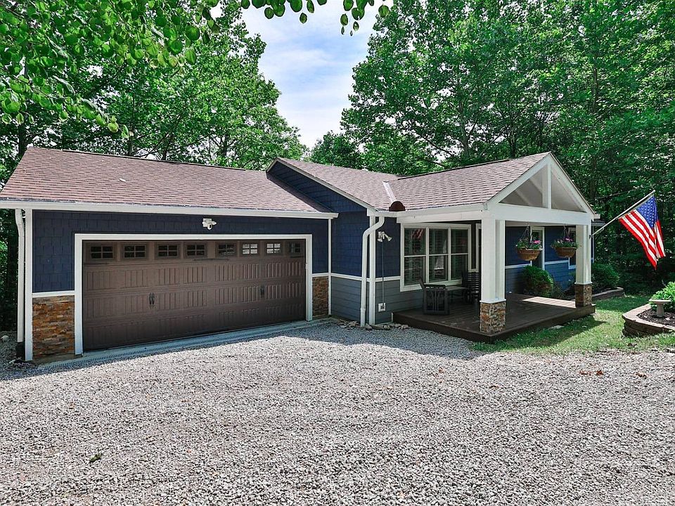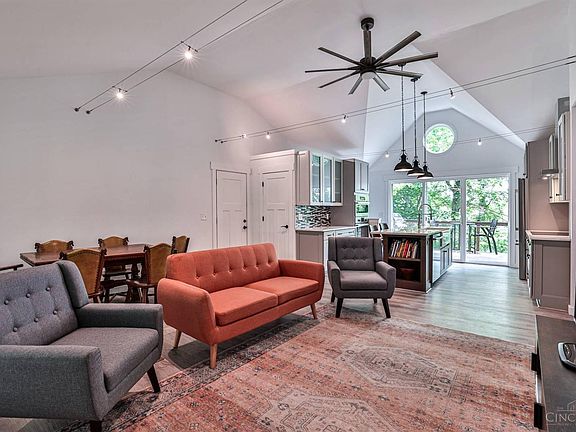 Nestled on 19 acres of hilly woodland, this expanded & renovated 3 bed, 3 bath home is a true outdoor enthusiast's paradise. Experience the tranquility of nature from every angle with wooded views, 2 spacious decks perfect for enjoying morning coffee or evening sunsets & direct access to Todd's Fork Creek. Indulge in luxury living w/an ensuite primary bedroom featuring a lavish bath complete w/a multi-jetted rain shower & Kohler fixtures. Entertain w/ease in the chef's kitchen boasting a central island, quartz countertops & SS appliances, all set against the backdrop of wooded vistas. Escape to the LL retreat featuring full light windows, a cozy wood stove set against a gorgeous stone feature wall & charming wood beams sourced from a Kentucky farmhouse. Stay organized w/the convenience of a cedar closet & enjoy the workshop w/electric & hot tub hook-up. Perfect for hobbyists & relaxation alike. Explore the natural beauty of the trails, orchard and creek! over 2500 finished sf.