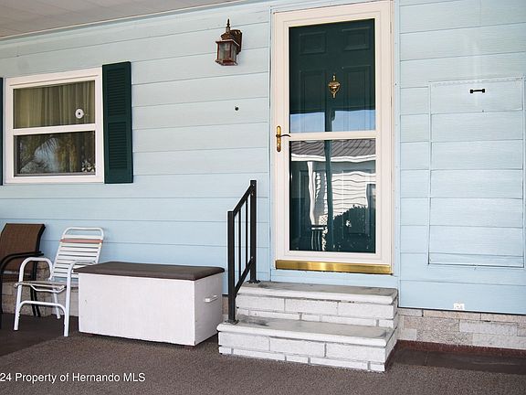 Situated on owned land, this residence features a nominal HOA fee of just $50.00 per month, providing access to community amenities and maintaining the lush surroundings. With a new AC/Heat Pump unit installed in 2017, a Roof Over in 2012, New Windows 2015, this home ensures comfort and peace of mind for years to come. Brookridge Community is a private restricted 55 and over, 24 hour Security Gated Entrance, deed restricted, manufactured home community. The community offers a private par 72 golf course, clubhouse, Vegas-Style shows during season Oct-Apr heated pool, sauna, tennis courts and pickle ball courts, fitness room, numerous clubs with activities. shuffleboard courts, bocce ball courts, bingo, RV and Boat Storage Compound, Social dance and over 100 clubs.