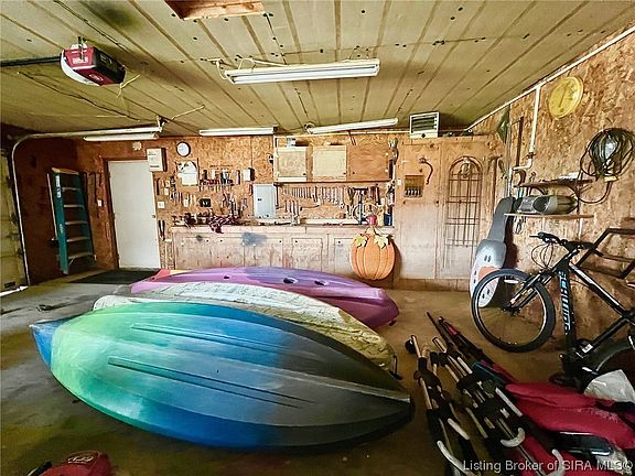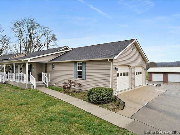 Brooksburg is a respite from Madison’s hustle. This quaint downtown is walkable and peaceful. This is where the rural life meets the river. This home, built in 1992, offers over 1300 sf, 2 bed/ 2 bath. Spaciousness and updates add appeal. Although some projects are incomplete, the seller is offering all luxury plank flooring and paint that is already purchased to the buyer. There is an attached 2 car garage that is fully insulated, as well as a detached 2 car garage that is insulated and with work benches and heat. The wrap-behind decking allows outdoor space for appreciating the serenity of the surrounding fieldscape. Brooksburg is only 7 miles east of downtown Madison, and offers the first public boat ramp on the Ohio River outside of Madison. You may walk to the river from this home, and access your recreational areas. Take a look and prepare for your enjoyment of this property!