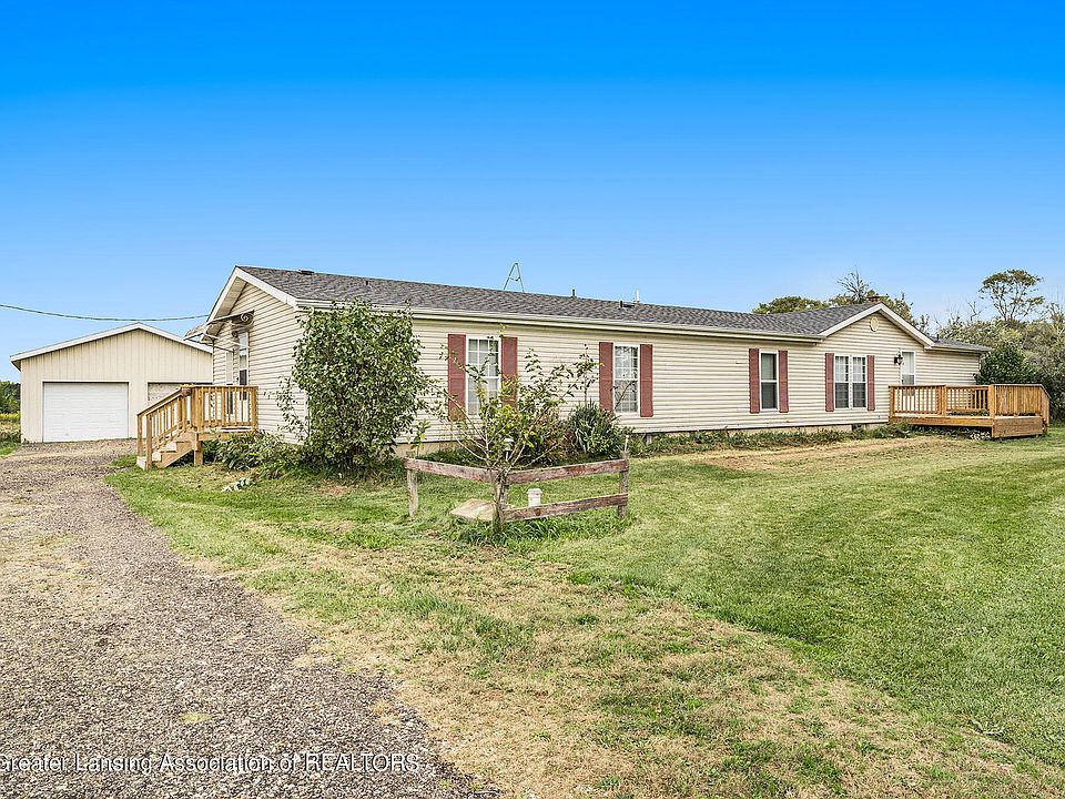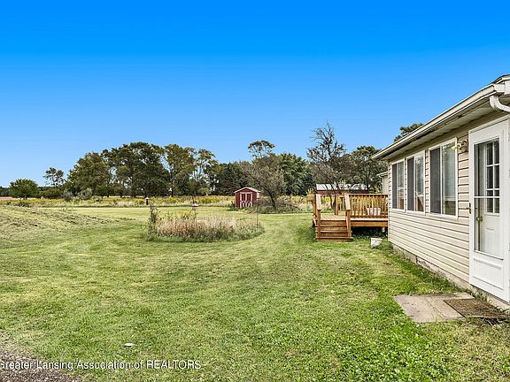 Welcome to 7684 W Centerline Rd. St. Johns! This home, pole barn and a poultry coop sit on 4 acres on which you will enjoy the trails and trees. The home itself features five bedrooms and three full bathrooms with a great open concept layout that sits on a full poured concrete basement. This home has a brand new roof, new exterior doors, newer furnace and water heater, new carpet in several rooms, an added three seasons room, a newly laid crushed asphalt driveway, and a new side porch and front deck.