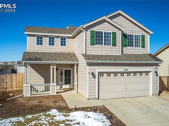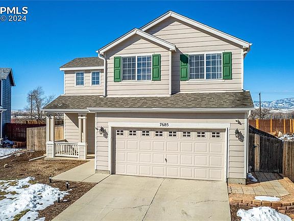 Introducing an enchanting retreat nestled in the heart of the esteemed Countryside West Community. With no HOA dues and boasting low property taxes, this haven offers serene living. Strategically positioned just a brief 15-minute drive from Fort Carson and a mere 10 minutes from the bustling Fountain town center, convenience meets tranquility in this idyllic location. This charming abode unfolds across two spacious stories, showcasing 3 bedrooms and 2.5 bathrooms. Imagine yourself embraced by the expansive 6,000 square foot lot, where the backyard oasis awaits with a captivating covered patio, offering unrivaled views of the majestic Front Range. As you step inside, be enveloped by the grandeur of soaring vaulted ceilings and an abundance of natural light streaming through the windows. The kitchen, a culinary haven, awaits with ample cabinet and countertop space, accentuated by sleek, modern appliances. Retreat to the expansive living room, adorned with large windows framing picturesque views and a gas fireplace, promising cozy evenings in warmth and contentment. Venture upstairs to discover the owner’s suite, where panoramic mountain vistas greet you each morning through expansive windows. Luxuriate in the ensuite bathroom, boasting dual vanities, a tiled shower, and a walk-in closet. Two additional generous bedrooms and a dedicated full bathroom grace the upper level, offering ultimate convenience for seeking seamless living. The time to seize this opportunity is now – schedule your showing today and embark on the journey to make this home your dream home!