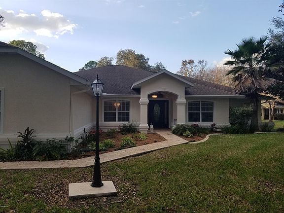 Beautiful 4/3/3 Corner Lot Golf Course CBS home with caged screened and solar heated in ground salt pool, beautifully landscaped with irrigation,with magnificent views and conveniently situated right next to the 2nd hole of the Ocala National Golf Course. Situated right across the road from the new World Equestrian Center. This home has all the amenities, including a bonus room/office. Great size master suite with trey ceiling, and additional double split plan master suite on opposite side of home, both with doors to spacious caged pool area with outdoor kitchen. Twin walk in pantries, vaulted 12'6'' ceilings, open plan kitchen with new brush finish graphite appliances and solid maple cabinetry. Separate dining room and family room with gas fired fireplace. Central vac & water softener.