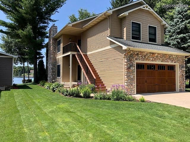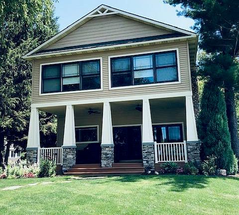 Gorgeous lakefront property on the Main Canadian Lakes! Your dream home awaits you, featuring 3 bedrooms and 2 baths and approx 2460 finished sq ft. and a 2 car garage. Imagine the comfort and relaxation you will feel as as you enjoy the evening sunsets from your beachfront patio. The location of this home is ideal with close proximity to golf, playground area for the children, outdoor pool, tennis and much much more. The construction of this home outstanding and some of the many upgrades and features include: 2 stone fireplaces, distressed hardwood floors, slate tile, quartz counter tops, bar area for entertaining, and a beautiful flat sandy beach area.