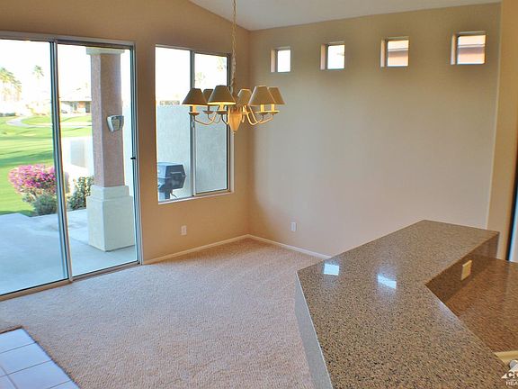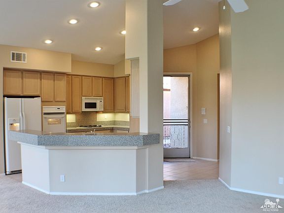 This stand alone home inside of The Oasis Country Club is located on an elevated lot above the fairway on the golf course. Home offers tons of outdoor living space with a private front courtyard and a more open back patio. This is the most popular floor plan in the complex with a large great room concept, soaring high ceilings, a double sided fireplace, inside laundry area, walk in closets, and upgraded counter-tops. This home has been recently professionally painted and has new carpet installed. The 2nd bedroom has an extended area which would make a great sewing or hobby area. Two car attached garaged and lots of extra parking on the perimeter street for guests. Come make this your oasis under palm trees!