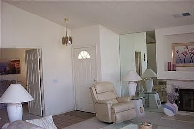 Discover The Oasis County Club and this condo which is approximately 1585 Sq.Ft. with 3 bedrooms and 2 baths. The location is elevated with all those great views of the golf course, lake and mountains. The entire home is tiled with large neutral colored tiles. The kitchen has been updated and includes a gas range. Your guests will enjoy the upgraded bath with a nice pop of color. Step from the master bedroom out to a private sunny patio. The two car garage has been finished and also attic access created for extra storage. A golf course location is entertaining and it's fun to watch all the action on the fairway. The splashing of the water on the lake can create a soothing atmosphere. The beauty of the Oasis Country Club is that it is entirely member owned and managed on site. The golf memberships are affordable and the course is fun but challenging, with 22 lakes to avoid!