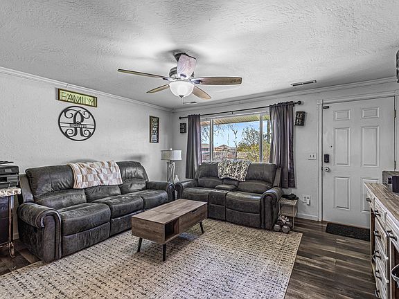 Searching for a single level home on a half acre lot with a large shop? If so, this is the one for you! This property features 4 bedrooms, 2 bathrooms, 1568 sq ft, large galley kitchen w/ ample cabinetry and Corian countertops, spacious deck, Rv parking & hook-ups (power & water), irrigation well, sprinkler system (front & back), updated & spacious walk-in tiled shower (updated lighting & ceiling showerhead), updated flooring in the living room & hallway, raised garden beds, chicken coop, & much more! Detached shop has power, multiple storage areas, and is believed to be around 2500 sq ft. Perfect opportunity for anyone looking for a large lot to work on vehicles, host events, and/or simply enjoy a property with a lot to offer! This one won't last long on the market, so contact your agent today for a personal tour, before its too late!