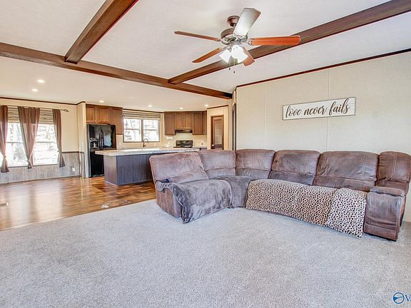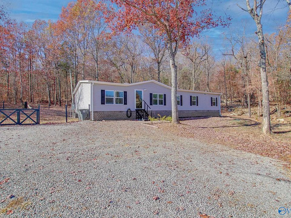 Charming 4-bed, 2-bath home on 10+/- acres near Bankhead National Forest offers a wildlife haven! Enjoy a spacious living room, family room, and a convenient laundry room. The eat-in kitchen includes appliances, a walk-in pantry, and a kitchen island. The master bedroom features a walk-in closet and a full bath with a separate shower and a soaker tub. Outside, a gravel circular driveway leads to a detached 1-car garage and a 2-car 24x24 detached garage with RV plug, welder plug, and 200 amp service. Relax on the deck with stunning mountain views. The property includes streams and caves, adding to its natural allure.