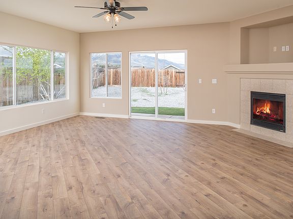 Enjoy the sunsets over Peavine Mountain from your backyard! This 4 bed 2.5 bath home in Golden Valley features a beautiful kitchen with ample cabinet space, granite countertops, stainless steel appliances, pantry, and breakfast bar. Dining area is adjacent to kitchen. Great room has a gas log fireplace and sliding glass door to the backyard. Spacious master bedroom with another slider leading to backyard. Master bath includes dual sinks, garden tub, glass shower and an impressive walk in closet. hree more bedrooms each with plenty of closet space. Solar has smart meter with solar buy back, generator hook up with 4 breakers. Storage shed will stay with the home. Call today for a showing!