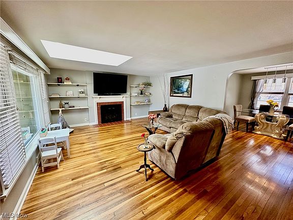 Welcome to the charming and move-in-ready two bedroom, one and a half bath ranch in prime Mentor location! 7687 Garfield Rd. will have you dancing on the beautifully finished hardwood floors with tons of natural light throughout the home! You will be impressed at the size of the living room with skylight featuring a gas fireplace to cozy up next to. Through the arched doorway will be the formal dining room adjoining the tastefully updated kitchen with glass and porcelain backsplash and stainless steel gas range. The main bathroom boasts ceramic tiled tub surround and updated vanity with the two generous sized bedrooms on either side-primary bedroom having double closets. Once you open the updated sliders to the back deck, you will feel as though you are in your own private park with mature trees in the distance. Oversized shed (2016) for all of your outdoor storage so you can park both cars in the attached garage space. Come and see what this beautiful home has to offer!