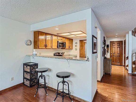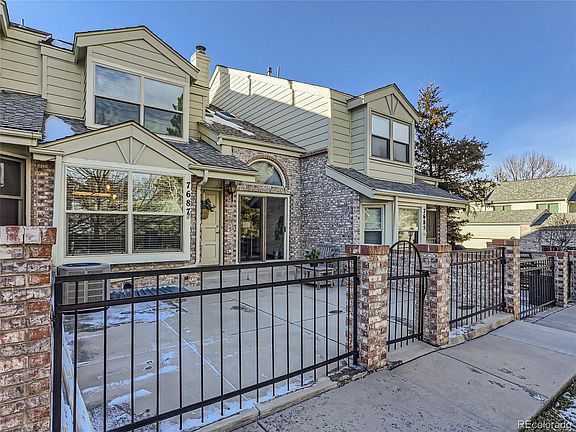 Open and light two story townhome in a wonderful neighborhood circle with community pool connecting to Arapahoe Park with private community entrance. Home is updated with modern finishes including bamboo flooring, granite countertops, stainless steel appliances, new windows, neutral paint colors, and tasteful light fixtures. Living room is airy and bright with vaulted ceiling, fantastic light, and in/out CO Living connecting family room to east facing large front patio via slider (possible french door?)! Two bedrooms plus open "Den/Office" Landing upstairs also feels bright and spacious with more vaulted ceilings, large windows, and skylights. Primary suite is large enough to easily accommodate a king size bed and has an ensuite 5-piece bathroom with large garden tub. Secondary bedroom has a true loft accessed by built in ladder into the vaulted ceiling space, wonderful fun play/study/sleep space! Attached garage and maintenance free living adds peace of mind.