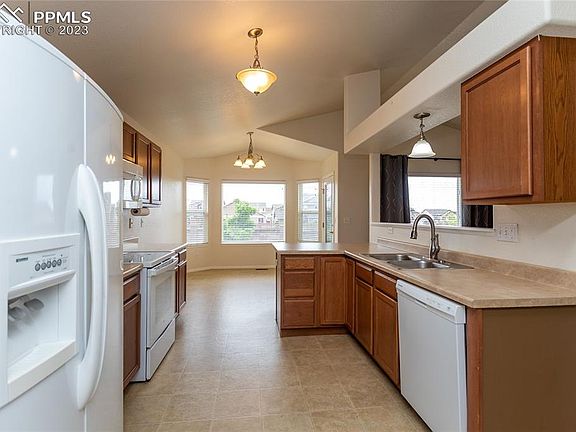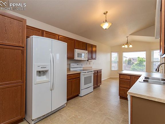 Super clean 4 bedroom rancher with 3 full baths located in the desirable Forest Meadows neighborhood! A large covered front porch welcomes you home! Vaulted ceilings, gas fireplace & beautiful windows with natural light make the open concept floor plan welcoming! Separate dining area with bay windows is perfect for hosting and entertaining. The kitchen features mostly newer appliances and is open to the living room, so everyone can join in the fun. The large master retreat features an attached master bathroom with dual vanities. There is another full sized bathroom, two bedrooms, and a separate laundry room to round out the main level! The basement features another fully finished bedroom and a full bath. The unfinished portion of the basement is an open palate...finish an office (or two!), another bedroom, family rec room...the possibilities are endless. The backyard is fully landscaped and fenced, perfect for enjoying the great Colorado outdoors. Central air and built-in garage shelving are just a few more of the added features this home offers! The neighborhood includes beautiful parks, wonderful schools, and is conveniently located near Woodmen with easy access to the Powers corridor, military bases, shopping & entertainment! This home is move-in ready and it has everything you need, now all it needs is you!