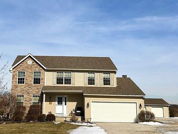 You need to see this wonderful, well-kept home! Located just far enough from town to offer peace and tranquility. Sits on nice, flat land and across the road from a nature preserve. Wonderful open kitchen and family room with eat-in dining and sliding glass door to a fabulous deck! All stainless steel appliances will remain with the home. First floor is complete with formal dining room, formal living room, laundry room and half bath. Four spacious bedrooms on the second floor. Large master bedroom with a great walk-in closet and 4 piece ensuite. The basement is finished with a separate room that could be a 5th bedroom or office space. Basement also has storage and great entertainment space. Additional detached garage with space for workshop or office. Home warranty is an option.