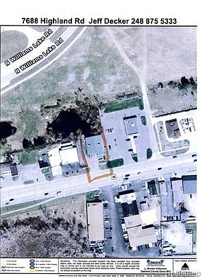 Great location with over 100' on well traveled M59 close to Williams Lake Rd This is Building sale Only not Business. With 4487' square feet on entry level and an additional 650' square feet of Office and Storage area that overlooks main floor. Seller will consider a Land Contract.