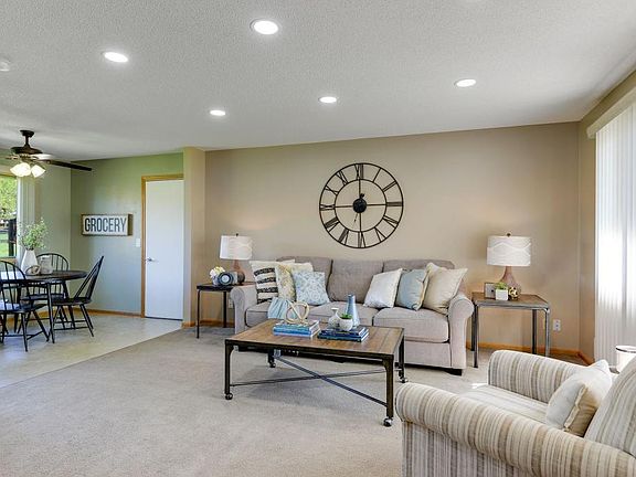 This warm and inviting home sits at the end of a cul-de-sac and has a large, wide open fenced in yard, spacious concrete patio, large secure shed and a dog kennel. The home is complete with three bedrooms and two full bathrooms. One of which includes a luxurious whirlpool bath. All bedrooms are on one level and feature ample closet space. The home has numerous updates along with an updated kitchen, appliances, recessed lighting, freshly painted and new carpet.The yard is great for entertaining, active families, and animal lovers. Two car heated and finished garage with a surround sound system, great lighting, and overhead storage. Within walking distance of Kingston Park. In the school zone of Grey Cloud Elementary School and Cottage Grove Middle School. Best of all, this home is in move in ready condition.