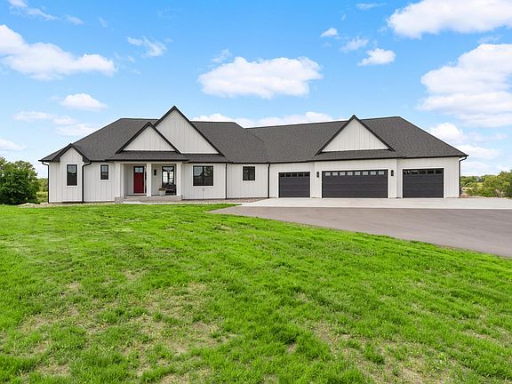 Welcome to your dream home! This recently constructed masterpiece is only available due to relocation. The home boasts 5 spacious bedrooms & 5 baths, perfect for modern living and entertaining. Nestled in a prime location, the property offers breathtaking panoramic views that you can enjoy from multiple vantage points throughout the house. The main level great room features a soaring cathedral vault & ceiling beams, creating an airy and inviting atmosphere, a gourmet kitchen featuring top-of-the-line appliances, custom cabinetry, and a large center island, luxurious primary suite complete with a spacious walk-in closet and a lavish en-suite bathroom, 2nd bedroom, office/flex room and laundry. The walk-out lower level offers in-floor Wirsbo heat, 3 additional oversized bedrooms, Jack & Jill full bathroom, family room with built-in custom cabinets, kitchenette with full-size refrigerator and custom cabinetry, & access to room under the garage (spancrete) for additional storage.