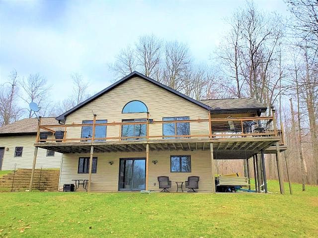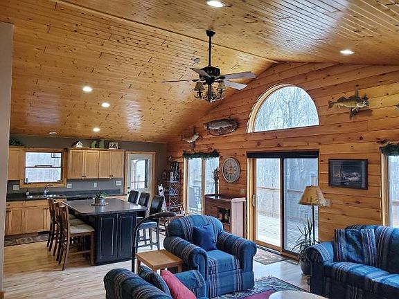 Check out this beautiful getaway nestled amongst a postcard-worthy northwoods setting on beautiful Wolf Lake. This 4 bedroom, 2.5 bath home built in 2007 offers hard to find privacy while having over 400 ft of frontage on Wolf Lake which has only a few homes on the entire lake. The main floor has an open concept kitchen/dining/living room over looking the lake while also including main floor laundry/mud room, 2 bedrooms and a full bath. The lower level is mostly finished and includes a family room, 2 more bedrooms, full bath and storage/utility room. The walkout access also has lake views! Other amenities include large lake side deck, partially covered, lower level patio under deck, hickory cabinets, 6 panel solid core doors, Pella windows, half log interior wall, satellite TV, DSL internet and a nicely landscaped lake side gathering area and 15x15 brick patio.