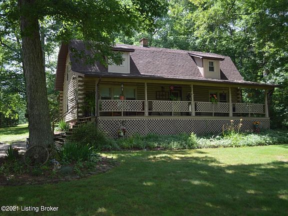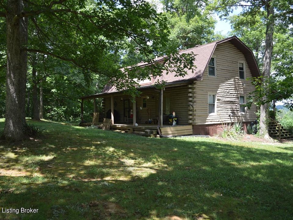 2 story log home in a beautiful country setting surrounded by mature trees. Features an open floor plan in the kitchen and living room areas, front and rear porch spanning the length of the home. Pond located directly in front of home in field. 4 miles from Rough River Lake State Park. 11.5 miles from Leitchfield. -17.5 Acres-2 Garages-Above ground pool-Long private gravel drive