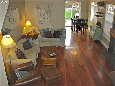 Stunning updates in this 3 bedroom home in popular Garden Home area. Pottery Barn decor with newer Brazilian Koa Hardwood floors, slate entry, Soap Stone fireplace w/Zebra Wood Mantle, interior & exterior paint, custom blinds. Vaulted master, double sinks. Bright kitchen w/slider overlooks huge fenced yard. A delightful home in area of restaurants & shopping.
