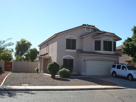 This two story, 4 bedroom, two & half bathroom home Plus a den/office downstairs that could be a Fifth bedroom. On a quiet cul-de-sac it offers an oversize lot providing plenty of running room for kids, dogs & entertainment. Inside, a spacious, bright, open floor plan with neutral paint and accent walls. Ceiling fans, sunscreens and dual pane windows along with north/south exposure help keep energy costs down. Upstairs is a huge family/game room/Loft. In the master bedroom you have a large bay window that provides lots of natural light as well as separate his & her closets. This backyard is to stunning! Pool was all redone 2015, Wood & Ceramic Flooring, Lower. Near the sports, arenas, Westgate and blocks from the Loop 101. Don't miss this one!You will fall in love with this house!!