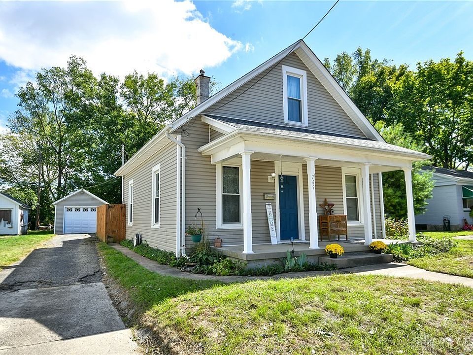 Absolutely wonderful 2 bedroom, 2 full bath home with study, living room, dining room and kitchen together with basement. Many updates in this cozy home including HVAC system, kitchen, both baths, fresh paint and more Seller is offering a $2000 flooring allowance to either carpet the 1st floor or refinish the hardwood floors. The master suite is on the 1st floor off the living room and features hardwood floor and full updated bath with wonderful walk in shower. The living room and dining room feature hardwood floor and the kitchen has tile with lovely cocoa cabinetry (an abundance of cabinets, island and more. The laundry area and 2nd full bath are on the 1st floor. The basement is home to the mechanicals and some storage. The half story features a study and bedroom with hardwood floors. The windows have been updated along with the HVAC system. The roof on the house and garage were just replaced in September, 2024. You are greeted at the front by a welcoming covered porch. A fenced yard, patio and 1 car garage completes this fine home. Nothing to do but unpack and relax.