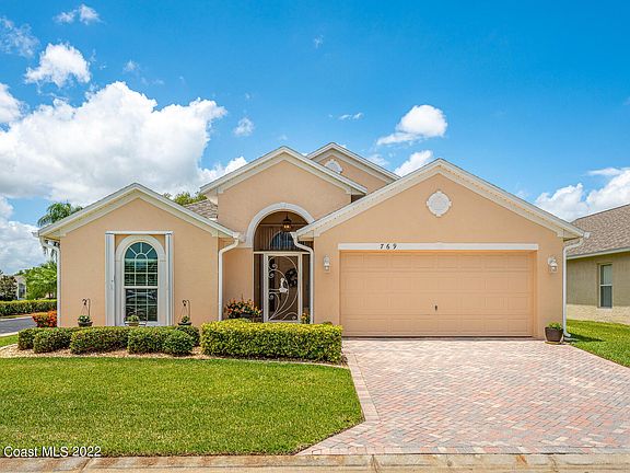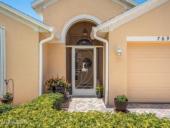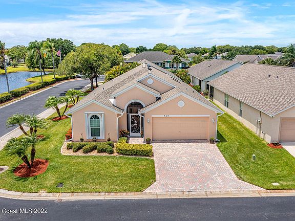 Beautifully Updated 3BR/2BA home in the Desirable 55+ Community of Compass Pointe in West Melbourne. This home is LOADED with recent updates, and there are NOT many models like this one! Excellent floor plan for entertaining w/ cathedral ceilings, and it is Turnkey ready to move in! Remodeled kitchen w/ beautiful white kitchen cabinetry, gorgeous granite counters, tile backsplash, & SS appliances. The floors have new vinyl plank flooring throughout & carpet in the bedrooms. Freshly painted interior & the popcorn ceilings removed! Roof -2017, HVAC in 2020, Hurricane IMPACT rated windows, and hurricane accordion shutters! The Primary bedroom in the home is 11X22! The Primary bath offers a new tile walk-in shower w/ a glass door, new vanity w/ granite, a soaker tub, & a spacious walk-in shower. The inside laundry room has new white cabinetry & this list goes on! Make your appt today!
