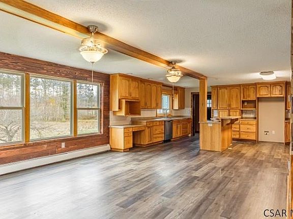 Discover exceptional space and comfort in this expansive 5-bedroom, 2-bathroom home set on 6 acres. Enjoy a modern kitchen filled with abundant cabinets-perfect for home cooks and entertainers. Step onto the brand-new vinyl plank flooring and plush carpeting throughout. The 2 car garage offers plenty of room for vehicles, storage, or hobbies. With 6 acres of land that provides options for recreation, gardening, or simply enjoying the outdoors. The new oil forced air furnace will provide comfort in the winter and the interior French drain will prevent water in the basement. Enjoy picnics in the pavilion attached to the rear of the garage.