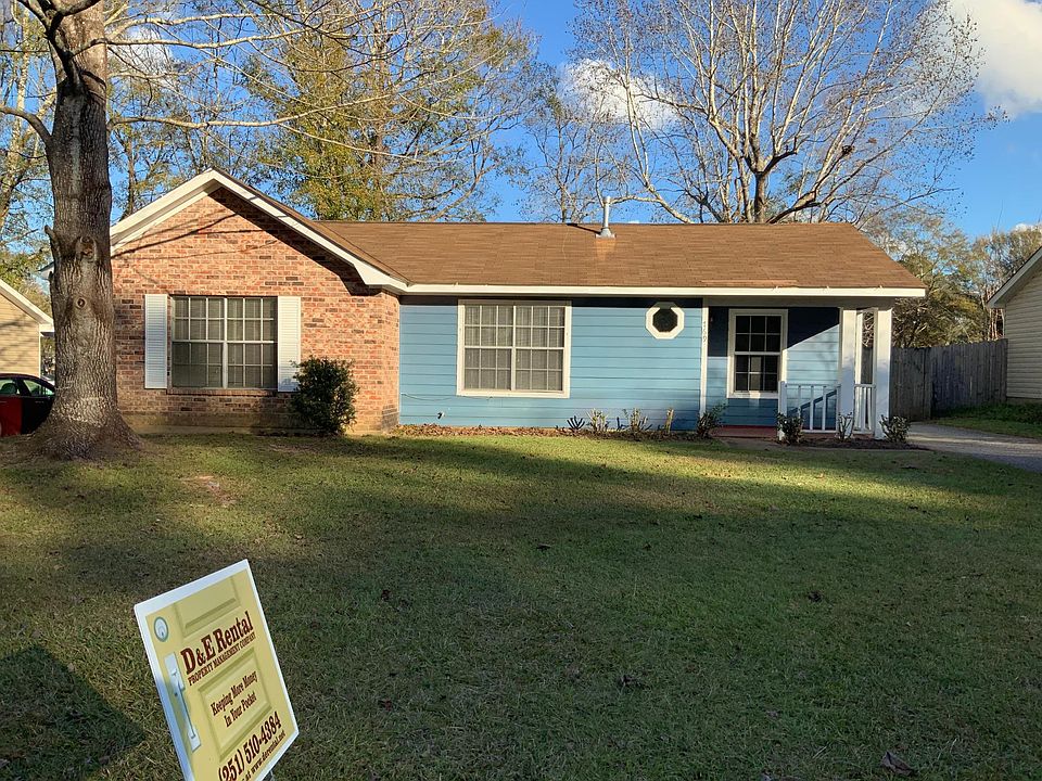 Fresh paint everywhere interior and exterior. New carpet throughout. New ceramic tile in all wet areas. New vanities in both full baths. New countertops and cabinets in kitchen. Accommodating living room with high ceiling has plenty of space for large furniture. Nice-size master suite and master bath. Laundry room inside for convenience. Patio perfect for grilling! Level privacy fenced in back yard. Storage building for lawn equipment. Easy to maintain property. New AC unit. This house is located in a quiet west mobile neighborhood near to all the newest shopping centers. Very close to the USCG Air Base and Sector Mobile.