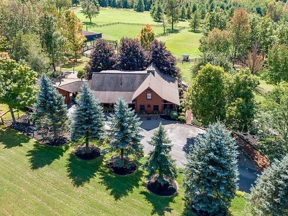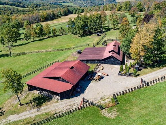 This log home was built in 1993 with Vermont logs. Main floor has an open floor plan with a large living room displaying a stone fireplace and wood burning stove. Custom kitchen has beautiful chestnut cabinets, marble counter tops, a breakfast nook, and a second antique stove. Main floor also has a formal dining room, laundry room, and full bathroom. Three bedrooms and a full bathroom are located on the top floor, and tile radiant heat flooring sweeps throughout all 3 levels of the home. Make your way to the basement where you’ll find an additional finished area to entertain guests, featuring a separate ground level entrance. Quality craftsmanship is apparent as you enter the horse barn which features 9 custom horse stalls built with North Carolina Yellow Pine. Lower portion of the barn has 4 large pens for handling & separating animals. A walkway leads to the end of the barn that has a washroom & leads out to the pastures. Outdoor riding ring and more than 4,500 feet of painted wooden fence with separate alleys going to each pasture. Next to the horse barn is a large hay barn with an overhang for storing equipment. 50 acres of open ground, a spring-fed pond, stream, & timberland.