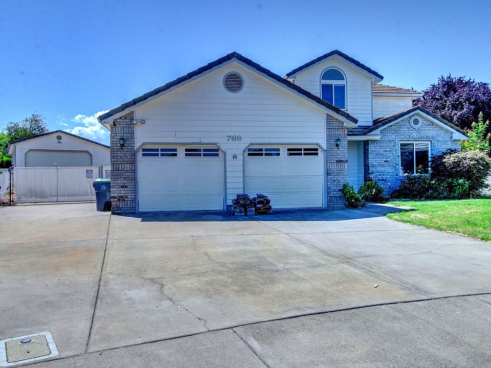 PRICED TO SELL! Spacious 4b/3b home in the desirable Jackson Creek Estates with HUGE shop and RV parking. Master suite and guest bedroom/bath are on the main level. Two more bedrooms / full bath upstairs. Lots of natural light, wooden floors, plenty of storage. The 1,187 sq ft shop features 12 ft doors, 220 electrical and two separate rooms, plus half bathroom. You also get RV parking with hookups, covered patio with retractable awning, two-car garage and easy-maintenance yard. Located on a quiet cul-de-sac and in a great school district. With some TLC and updating, this property has so much potential!! Come see for yourself. This is an estate sale. At this price, home is sold AS-IS.