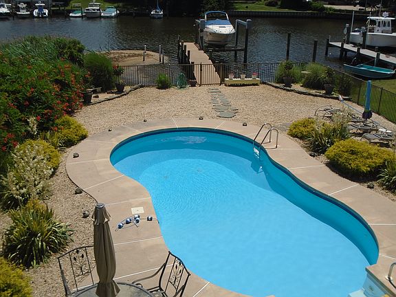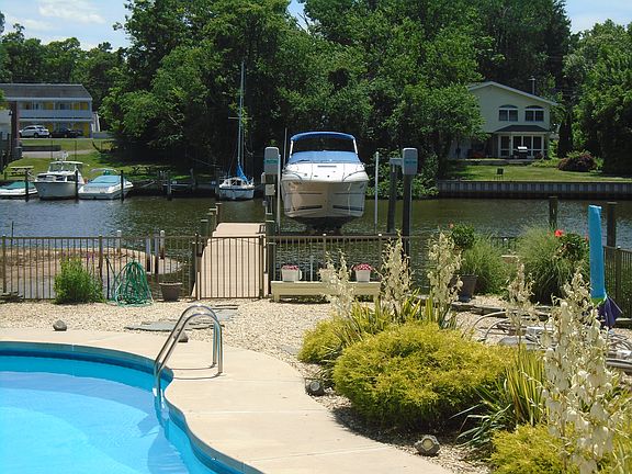 WATERFRONT 732-832-5992 Waterfront home for sale, located on safe, quiet street. Beautiful meticulously kept home located on desirable Metedeconk river minutes from the open bay. 4 bedrooms, 3 full baths. Gleaming oak wood floors, water views from every room, 3 zone heating. Master bedroom with vaulted ceiling and walk out Trex deck overlooking pool & water. Wood burning Vermont cast stove in sunken family room with surround sound TV theater system. Eat in kitchen with granite counter tops, tumbled stone backsplash, SS appliances & custom Quaker Maid cabinets. Open dinning room & living room with spectacular water views with recess music system for entertaining. Beautiful 6 panel solid oak doors throughout. Bulkhead with 47 ft. Trex dock, 10,000 lb. boat lift includes electric & water. IG pool in beautifully landscaped yard with outdoor music. Year round back porch fully covered with royal blue awning, comes with piped in gas grill. Never change gas tank again. Oversized 1 car garage, large yankee basement and large shed for all of your storage needs. 6 zone inground sprinkler system, uses low cost well water. Custom slate walkway leading to backyard. ADT security system including 7 out door camera surveillance system, records 24/7 with 30 day memory. This home shows pride of ownership, nothing to do but move in, unpack and enjoy the wide variety of wildlife and beautiful surrounding.